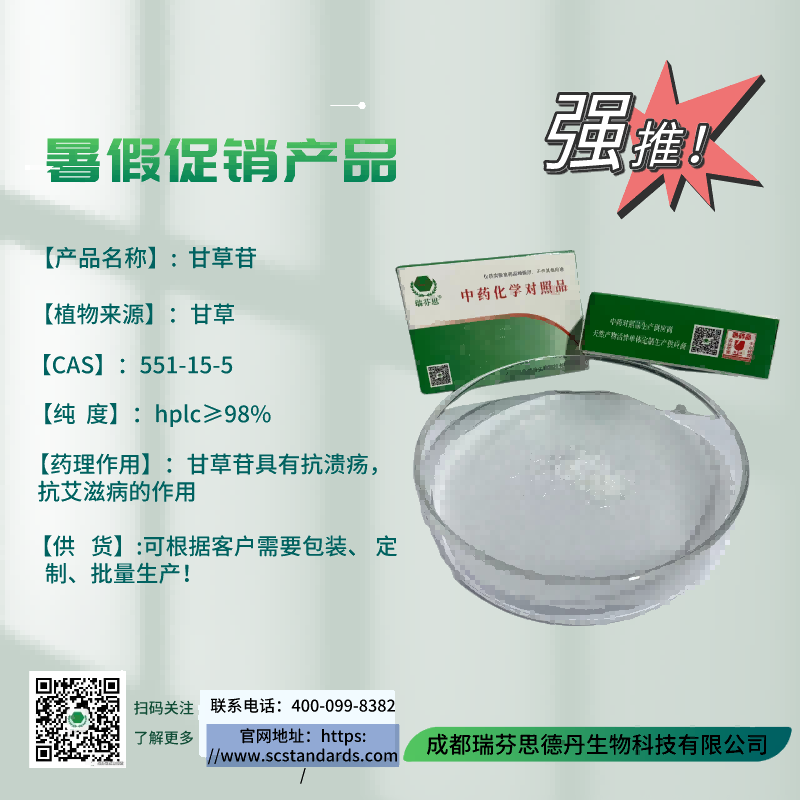 【藥理作用】:甘草苷具有抗潰瘍,抗艾滋病的作用