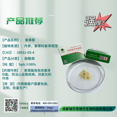 【藥理作用】:紫草酸具有改善腎功能、防治心血管疾病、抗氧化的作用