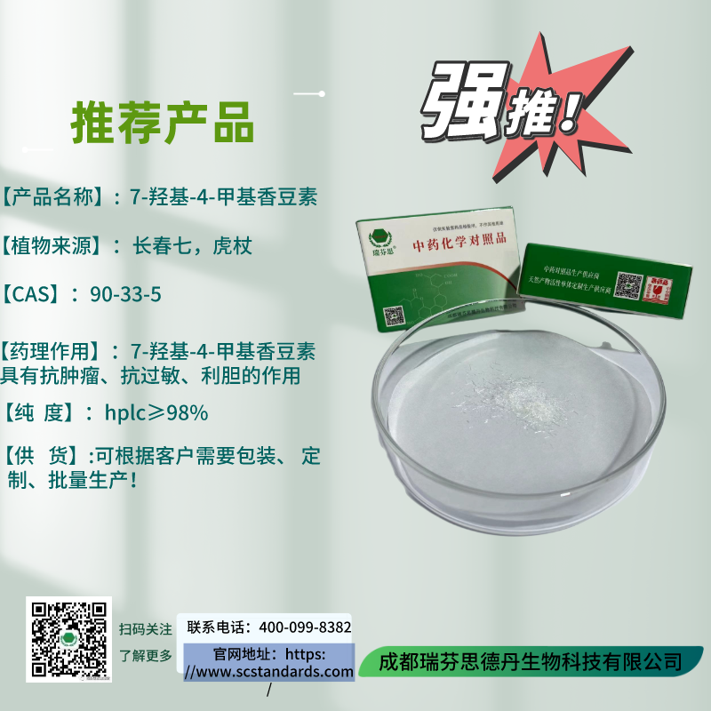 【藥理作用】:7-羥基-4-甲基香豆素具有抗腫瘤、抗過敏、利膽的作用